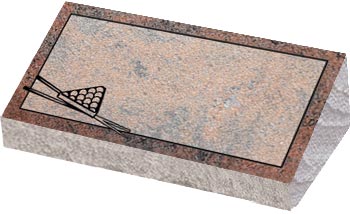 Granite Bevel Markers lay flat to the ground with a polished face on the top and rock pitched edges.They have a slanted face with the back edge raised higher than the front to give a small upright appearance.