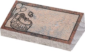 Granite Bevel Markers lay flat to the ground with a polished face on the top and rock pitched edges.They have a slanted face with the back edge raised higher than the front to give a small upright appearance.
