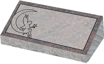 Granite Bevel Markers lay flat to the ground with a polished face on the top and rock pitched edges.They have a slanted face with the back edge raised higher than the front to give a small upright appearance.