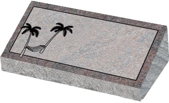 Granite Bevel Markers lay flat to the ground with a polished face on the top and rock pitched edges.They have a slanted face with the back edge raised higher than the front to give a small upright appearance.
