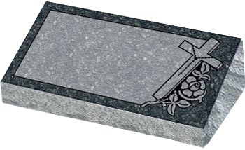 Granite Bevel Markers lay flat to the ground with a polished face on the top and rock pitched edges.They have a slanted face with the back edge raised higher than the front to give a small upright appearance.