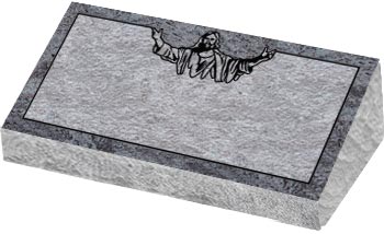 Granite Bevel Markers lay flat to the ground with a polished face on the top and rock pitched edges.They have a slanted face with the back edge raised higher than the front to give a small upright appearance.
