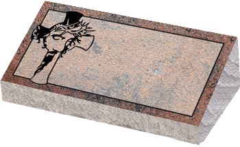 Granite Bevel Markers lay flat to the ground with a polished face on the top and rock pitched edges.They have a slanted face with the back edge raised higher than the front to give a small upright appearance.