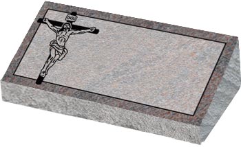 Granite Bevel Markers lay flat to the ground with a polished face on the top and rock pitched edges.They have a slanted face with the back edge raised higher than the front to give a small upright appearance.