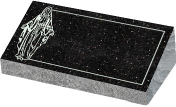 Granite Bevel Markers lay flat to the ground with a polished face on the top and rock pitched edges.They have a slanted face with the back edge raised higher than the front to give a small upright appearance.