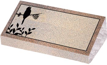 Granite Bevel Markers lay flat to the ground with a polished face on the top and rock pitched edges.They have a slanted face with the back edge raised higher than the front to give a small upright appearance.