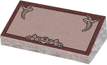 Granite Bevel Markers lay flat to the ground with a polished face on the top and rock pitched edges.They have a slanted face with the back edge raised higher than the front to give a small upright appearance.
