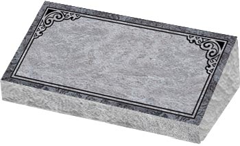 Granite Bevel Markers lay flat to the ground with a polished face on the top and rock pitched edges.They have a slanted face with the back edge raised higher than the front to give a small upright appearance.