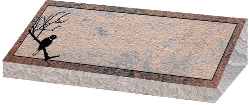 Granite Bevel Markers lay flat to the ground with a polished face on the top and rock pitched edges.They have a slanted face with the back edge raised higher than the front to give a small upright appearance.