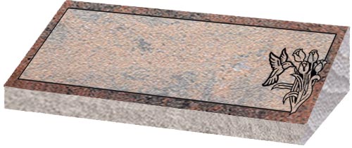 Granite Bevel Markers lay flat to the ground with a polished face on the top and rock pitched edges.They have a slanted face with the back edge raised higher than the front to give a small upright appearance.