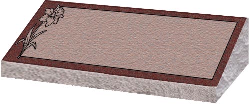 Granite Bevel Markers lay flat to the ground with a polished face on the top and rock pitched edges.They have a slanted face with the back edge raised higher than the front to give a small upright appearance.