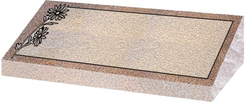 Granite Bevel Markers lay flat to the ground with a polished face on the top and rock pitched edges.They have a slanted face with the back edge raised higher than the front to give a small upright appearance.