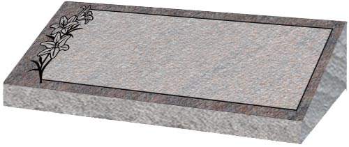 Granite Bevel Markers lay flat to the ground with a polished face on the top and rock pitched edges.They have a slanted face with the back edge raised higher than the front to give a small upright appearance.