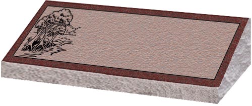 Granite Bevel Markers lay flat to the ground with a polished face on the top and rock pitched edges.They have a slanted face with the back edge raised higher than the front to give a small upright appearance.