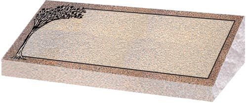 Granite Bevel Markers lay flat to the ground with a polished face on the top and rock pitched edges.They have a slanted face with the back edge raised higher than the front to give a small upright appearance.