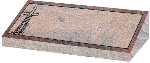 Granite Bevel Markers lay flat to the ground with a polished face on the top and rock pitched edges.They have a slanted face with the back edge raised higher than the front to give a small upright appearance.