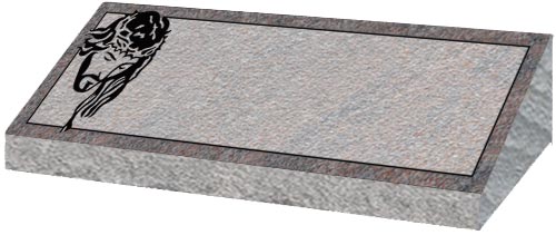Granite Bevel Markers lay flat to the ground with a polished face on the top and rock pitched edges.They have a slanted face with the back edge raised higher than the front to give a small upright appearance.