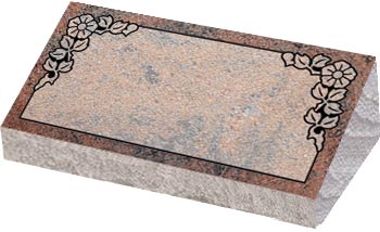Granite Bevel Markers lay flat to the ground with a polished face on the top and rock pitched edges.They have a slanted face with the back edge raised higher than the front to give a small upright appearance.