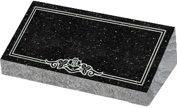 Granite Bevel Markers lay flat to the ground with a polished face on the top and rock pitched edges.They have a slanted face with the back edge raised higher than the front to give a small upright appearance.