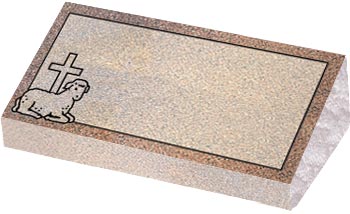 Granite Bevel Markers lay flat to the ground with a polished face on the top and rock pitched edges.They have a slanted face with the back edge raised higher than the front to give a small upright appearance.