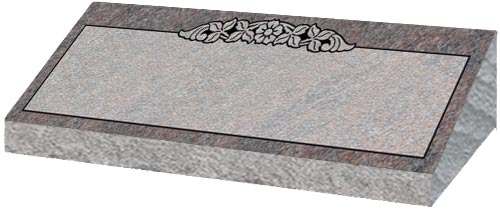 Granite Bevel Markers lay flat to the ground with a polished face on the top and rock pitched edges.They have a slanted face with the back edge raised higher than the front to give a small upright appearance.