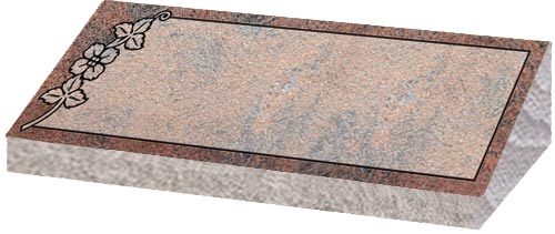 Granite Bevel Markers lay flat to the ground with a polished face on the top and rock pitched edges.They have a slanted face with the back edge raised higher than the front to give a small upright appearance.