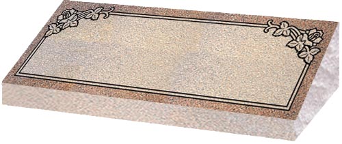 Granite Bevel Markers lay flat to the ground with a polished face on the top and rock pitched edges.They have a slanted face with the back edge raised higher than the front to give a small upright appearance.