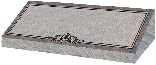 Granite Bevel Markers lay flat to the ground with a polished face on the top and rock pitched edges.They have a slanted face with the back edge raised higher than the front to give a small upright appearance.