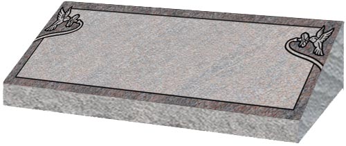 Granite Bevel Markers lay flat to the ground with a polished face on the top and rock pitched edges.They have a slanted face with the back edge raised higher than the front to give a small upright appearance.