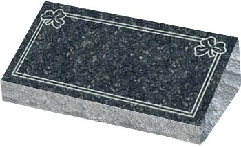 Granite Bevel Markers lay flat to the ground with a polished face on the top and rock pitched edges.They have a slanted face with the back edge raised higher than the front to give a small upright appearance.