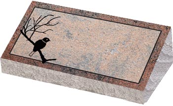 Granite Bevel Markers lay flat to the ground with a polished face on the top and rock pitched edges.They have a slanted face with the back edge raised higher than the front to give a small upright appearance.