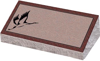 Granite Bevel Markers lay flat to the ground with a polished face on the top and rock pitched edges.They have a slanted face with the back edge raised higher than the front to give a small upright appearance.