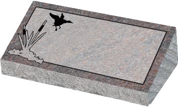 Granite Bevel Markers lay flat to the ground with a polished face on the top and rock pitched edges.They have a slanted face with the back edge raised higher than the front to give a small upright appearance.