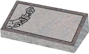 Granite Bevel Markers lay flat to the ground with a polished face on the top and rock pitched edges.They have a slanted face with the back edge raised higher than the front to give a small upright appearance.