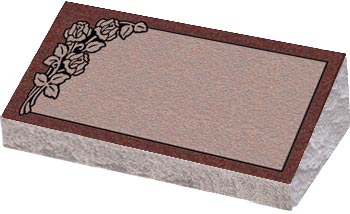 Granite Bevel Markers lay flat to the ground with a polished face on the top and rock pitched edges.They have a slanted face with the back edge raised higher than the front to give a small upright appearance.