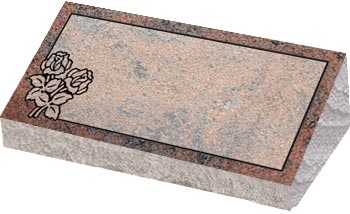 Granite Bevel Markers lay flat to the ground with a polished face on the top and rock pitched edges.They have a slanted face with the back edge raised higher than the front to give a small upright appearance.