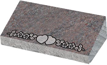 Granite Bevel Markers lay flat to the ground with a polished face on the top and rock pitched edges.They have a slanted face with the back edge raised higher than the front to give a small upright appearance.