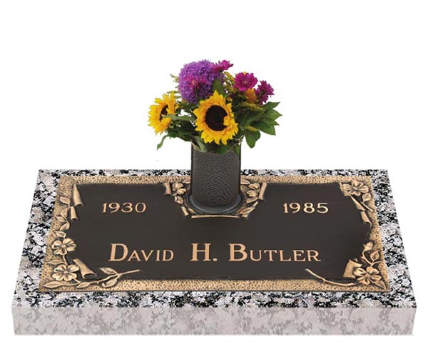 Bronze markers lay flat to the ground with a bronze plaque mounted on top of a 3 or 4-inch flat granite marker.