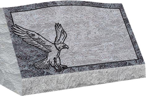 Slant come with a slanted polished face and rock pitched edges, serpentine top with a straight back and are installed on a concrete foundation or on a granite base.