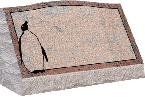 Slant come with a slanted polished face and rock pitched edges, serpentine top with a straight back and are installed on a concrete foundation or on a granite base.