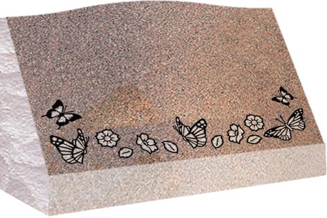 Slant come with a slanted polished face and rock pitched edges, serpentine top with a straight back and are installed on a concrete foundation or on a granite base.