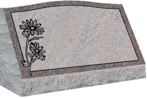 Slant come with a slanted polished face and rock pitched edges, serpentine top with a straight back and are installed on a concrete foundation or on a granite base.