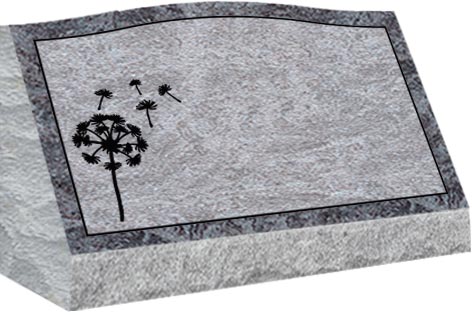 Slant come with a slanted polished face and rock pitched edges, serpentine top with a straight back and are installed on a concrete foundation or on a granite base.