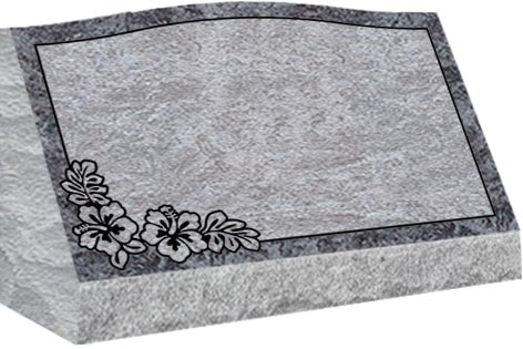 Slant come with a slanted polished face and rock pitched edges, serpentine top with a straight back and are installed on a concrete foundation or on a granite base.