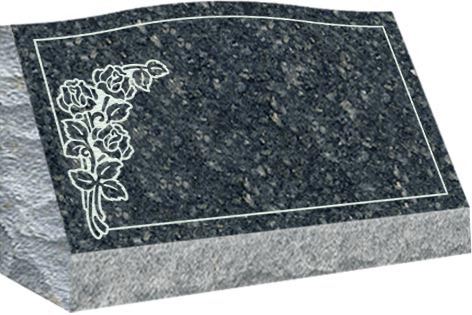 Slant come with a slanted polished face and rock pitched edges, serpentine top with a straight back and are installed on a concrete foundation or on a granite base.