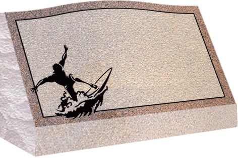 Slant come with a slanted polished face and rock pitched edges, serpentine top with a straight back and are installed on a concrete foundation or on a granite base.