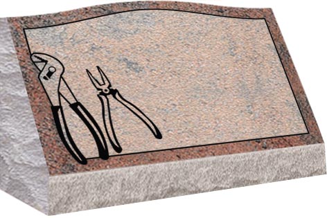 Slant come with a slanted polished face and rock pitched edges, serpentine top with a straight back and are installed on a concrete foundation or on a granite base.