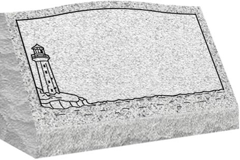 Slant come with a slanted polished face and rock pitched edges, serpentine top with a straight back and are installed on a concrete foundation or on a granite base.