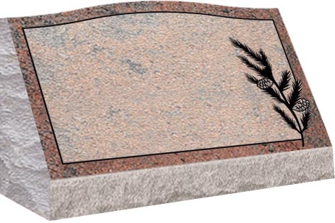 Slant come with a slanted polished face and rock pitched edges, serpentine top with a straight back and are installed on a concrete foundation or on a granite base.