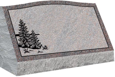 Slant come with a slanted polished face and rock pitched edges, serpentine top with a straight back and are installed on a concrete foundation or on a granite base.